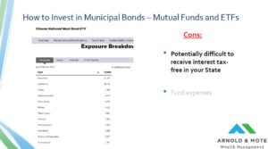 But, there are still a few things to consider when using mutual funds or ETFs for municipal bonds.