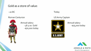 And just for example, it is pretty well documented that during the reign of the Roman emperor Augustus around 20 BC, a Centurion, which was one of the highest ranking members of the Roman army on the actual battlefield, had a salary in coins that totaled about 38 and a half ounces of gold. Today, with the price of gold at just over $1,800 per ounce, 38 and a half ounces of gold is equal to about $70,000.