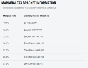 For example, here are the Federal income tax brackets for a married couple in 2023: