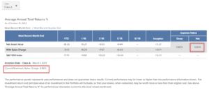 Notice that the fund has an expense ratio of 0.83%, and a sales charge of up to 3.5%.