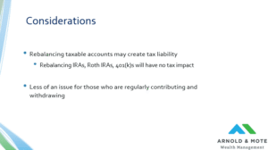 For the last bullet point here, rebalancing is a bigger issue typically for our retired clients more so than younger clients who are still actively saving.