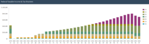 At the end of this hypothetical client’s retirement, much of their income is taxed at 37%, as shown by the purple on the chart.