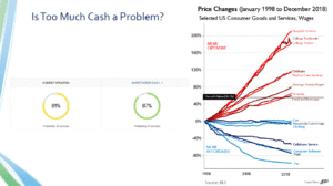 It’s worth mentioning that the chart on the first slide was only bank account cash, and did not account for cash in 401(k)s or IRAs, which surveys show cash makes up 15-20% of the normal account balance. And this is when a large cash holding can start to actually become a long term problem.